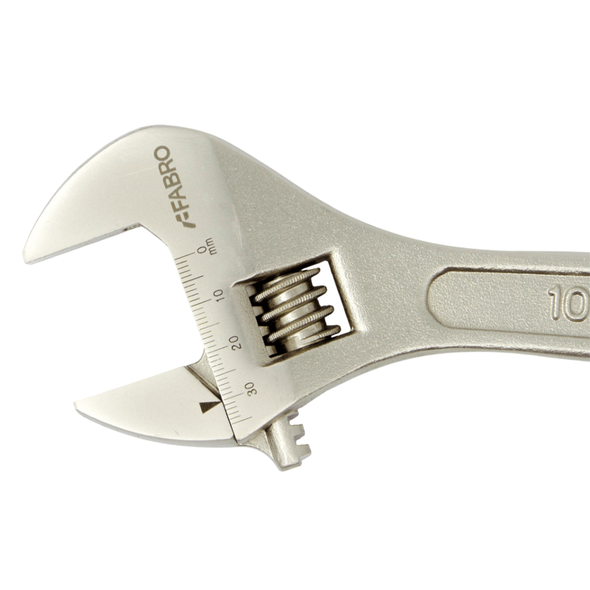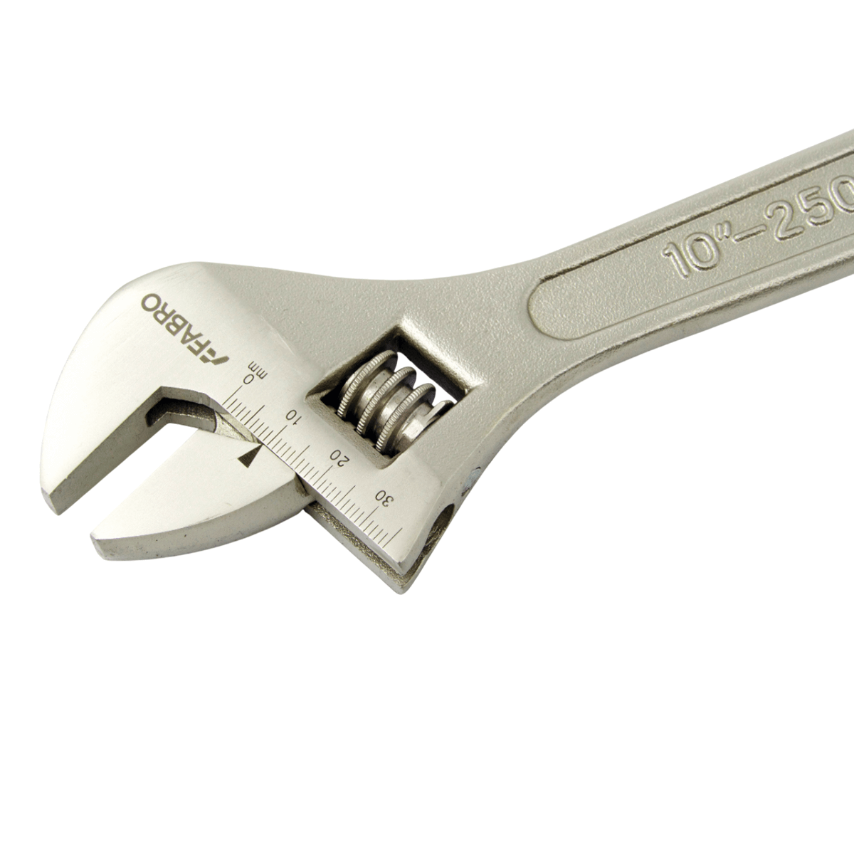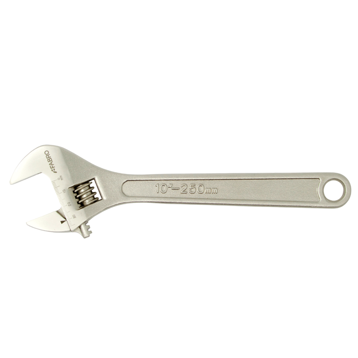 A chave inglesa ajustável da FABRO, também conhecida como chave de boca ajustável, é um instrumento projetado para o manuseio de elementos de fixação, como porcas e parafusos de diversas dimensões. Sua funcionalidade reside na capacidade de se adaptar a cabeças sextavadas e quadradas, eliminando a necessidade de um conjunto múltiplo de chaves fixas. É recomendada para aplicações em hidráulica, mecânica e serviços de manutenção geral, abrangendo desde o uso doméstico até ambientes profissionais. É particularmente útil na montagem de estruturas metálicas ou móveis que apresentam parafusos de diâmetros variados e essencial em atividades de encanamento para ajustes precisos de registros e conexões.